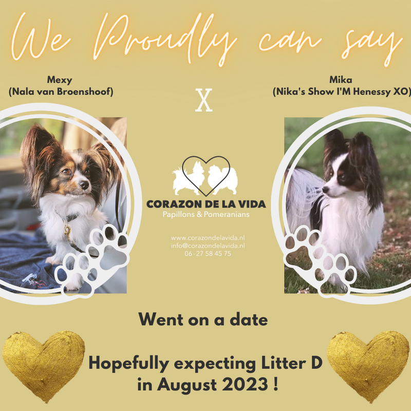 Afgelopen week is Mexy op date geweest met Mika. Half augustus hopen wij mooie en gezonde pupjes te mogen verwelkomen.